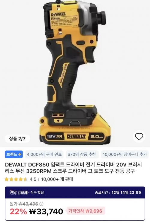 [알리] DEWALT DCF850 20V 임팩트 드라이버 (29,203원/무료) > 해외핫딜