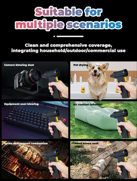 4.용도: 에어 쿠션 송풍 및 흡입, 컴퓨터 장비 청소, 산업용 먼지 송풍, 연소를 지원하는 숯 굽기, 자동차 송풍 및 제설, 영화관 촬영 및 바람 만들기, 애완동물 건조 및 기타 다양한 용도.