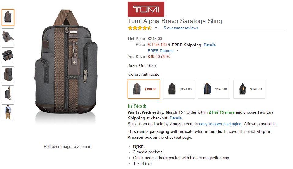 [amazon] Tumi Alpha Bravo Saratoga Sling ($196/미국내 FS) > 해외핫딜