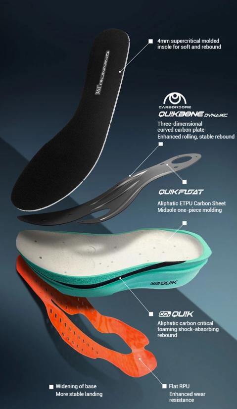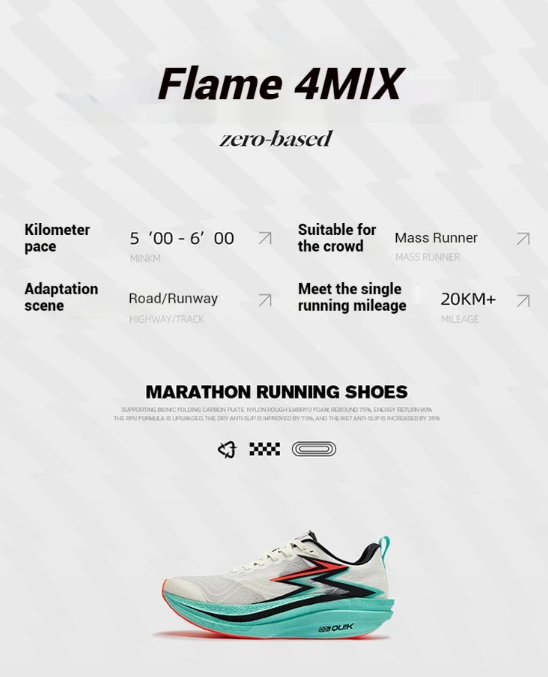 • 361도 플레임 4.0 미스터의 탄소 플레이트:뛰어난 안정성과 반응성을 제공하는 탄소 플레이트로 마라톤 성적 향상에 도움을 줍니다.