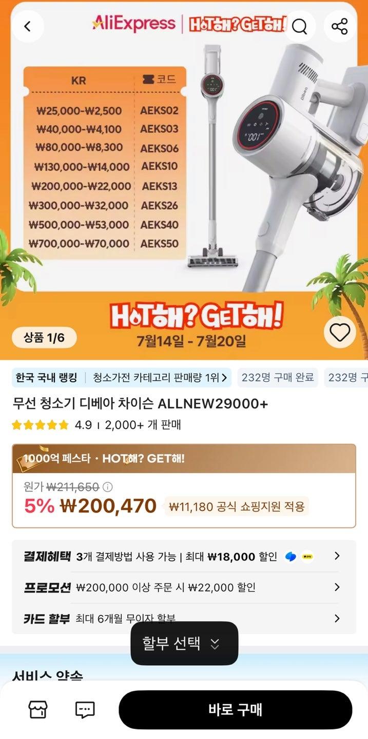 [알리] 무선 청소기 디베아 차이슨 ALLNEW29000+ (172,470원/무배) > 해외핫딜