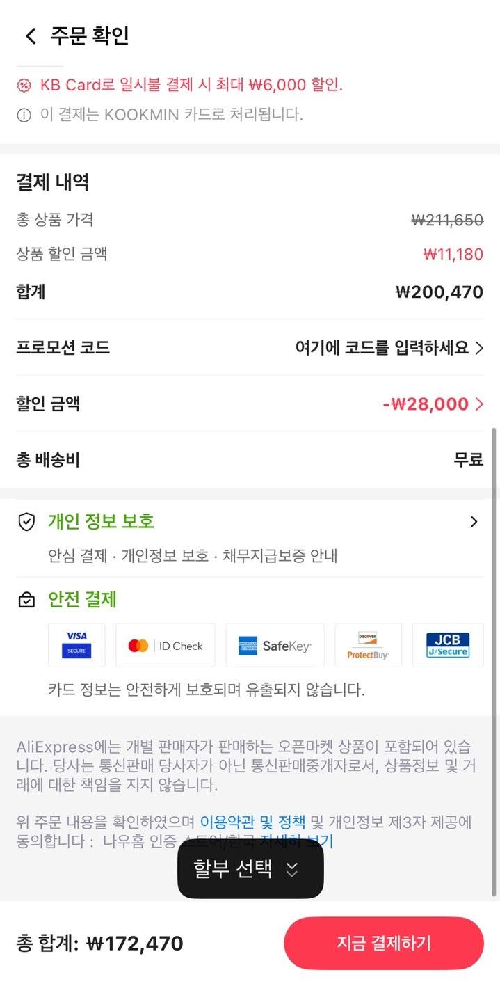 20만원 결제시 할인코드 AEKS13 넣으면 22000원 할인에