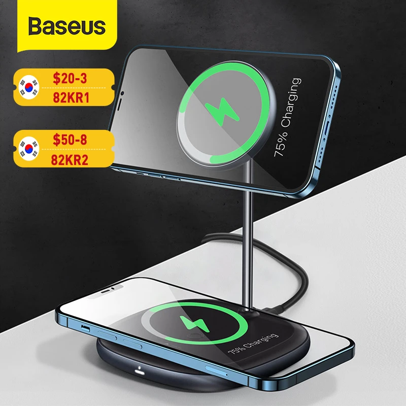 [알리] Baseus 스완 2in1 업그레이드 아이폰12 & 에어팟 맥세이프 탁상용 20W 충전기 (25,714원(21.5$)/무료배송) 댓글1개