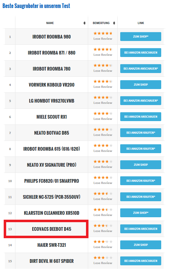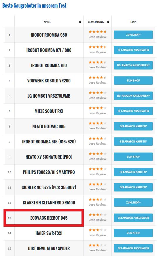 독일 사이트에 올라온 로봇 청소기 순위 올려드립니다. (링크: http://www.akku-und-roboter-staubsauger.de/)