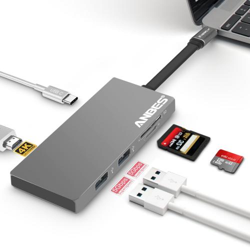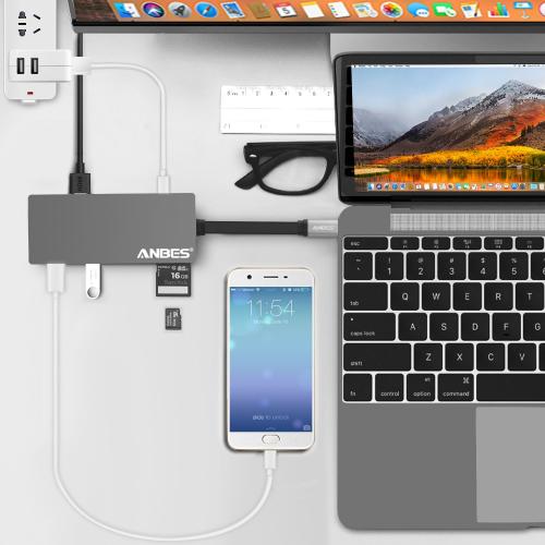 USB C Hub, ANBES 6 in 1 USB C Adapter 3.1 Type C Charging Port, 4K Output Port, TF/SD Card Reader, 2 USB 3.0 Ports for MacBook Pro 2015/2016/2017 and more Type C Devices $6.20