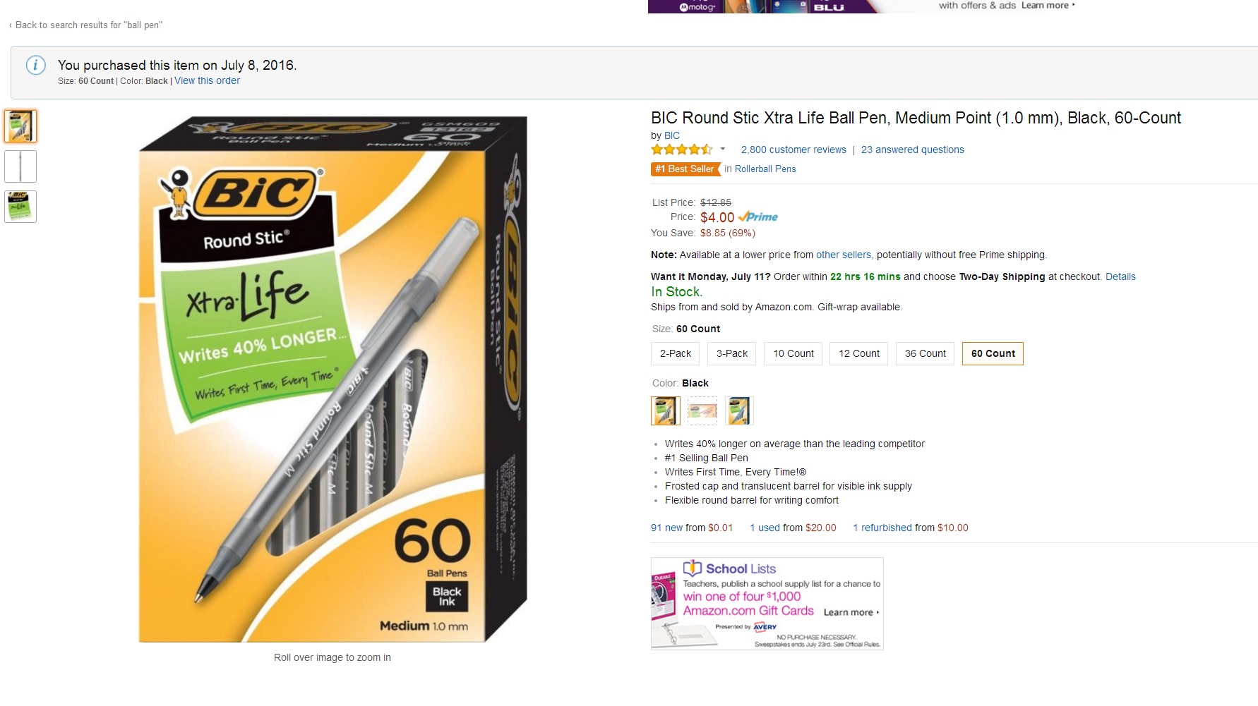 [Amazon] BIC Ball Pen, Black, 60-Count ($4.00/Prime fs)