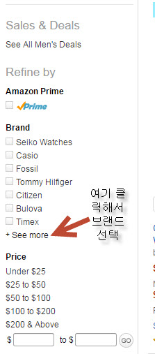 오메가의 경우 브랜드 리스트에 노출되지 않지만, o를 누르면 오메가가 나옵니다.