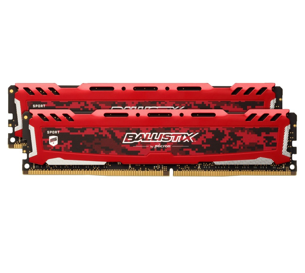 Ballistix Sport LT 16GB Kit (8GBx2) DDR4 3200 MT/s (PC4-25600) CL16 SR x8 DIMM 288-Pin Memory - BLS2K8G4D32AESEK (Red)
