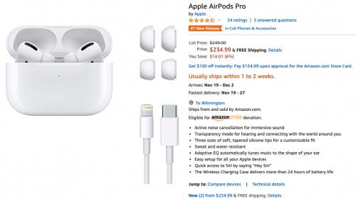 애플의 코드리스 ANC 블루투스 이어폰, 에어팟 프로입니다.