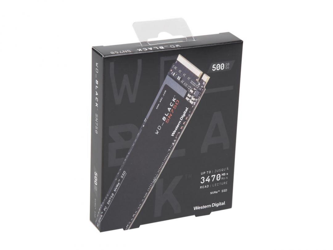 웨스턴 디지털의 M.2 2280 규격 NVMe SSD, WD 블랙 SN750 500GB 모델입니다.