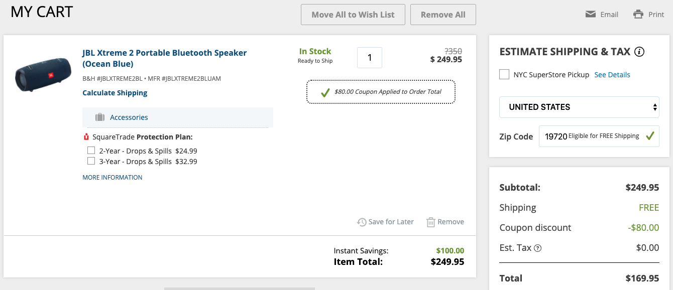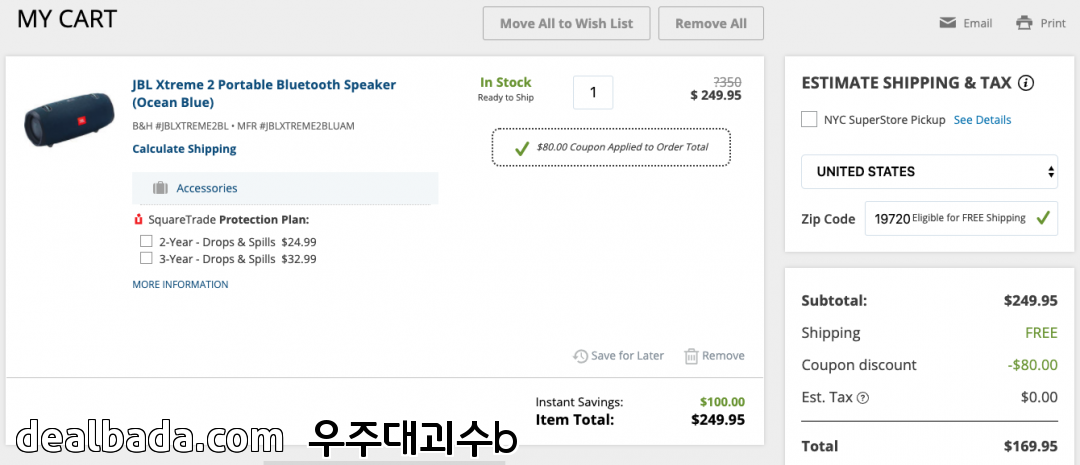 가격표 밑에 '$80.00 Coupon Applied in Cart'라는 문구가 떠있으면 할인 자동으로 적용됩니다.