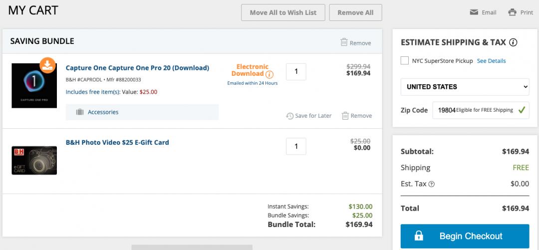 [B&H] Capture One Pro 20 (Download) ($169.94 / 다운로드)
