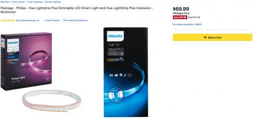 필립스의 LED 스트립, 휴 라이트스트립 플러스(2m)와 라이트스트립 플러스 익스텐션(1m) 세트입니다.