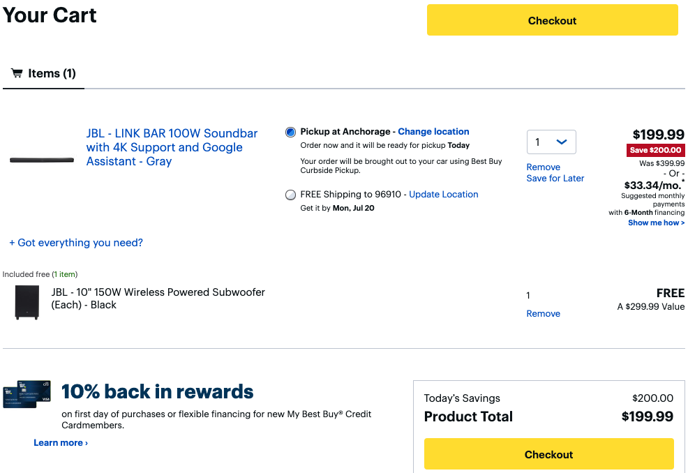 사운드바만 카트에 담으시면 우퍼도 자동으로 같이 담깁니다.