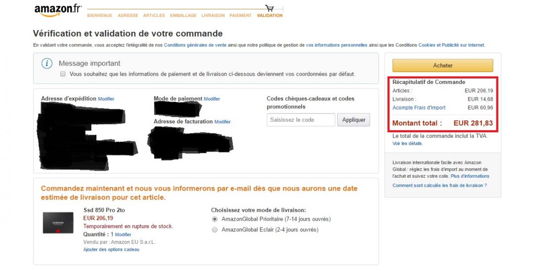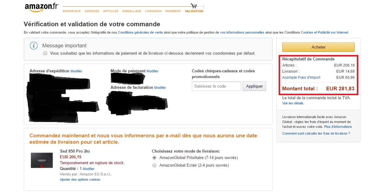 상품가 247.43유로 나오는데 이건 프랑스내 부가세 20% 포함된 금액이고, 한국으로 직배하시면 부가세 빠진 206.19유로 나옵니다. 여기에 배송비 14유로에 Deposit이 60유로 붙는데 Deposit은 차액 환불받을지도 모르겠네요 |