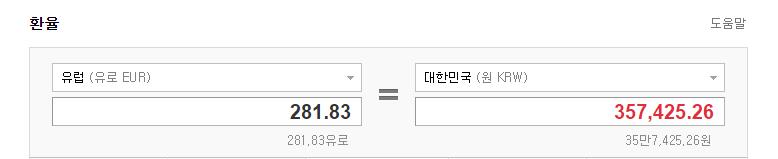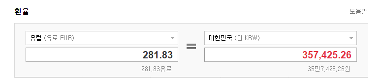 최종 결제 예상 금액이 EUR 281.83 이네요~ |