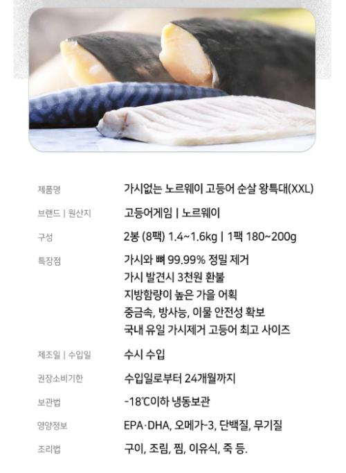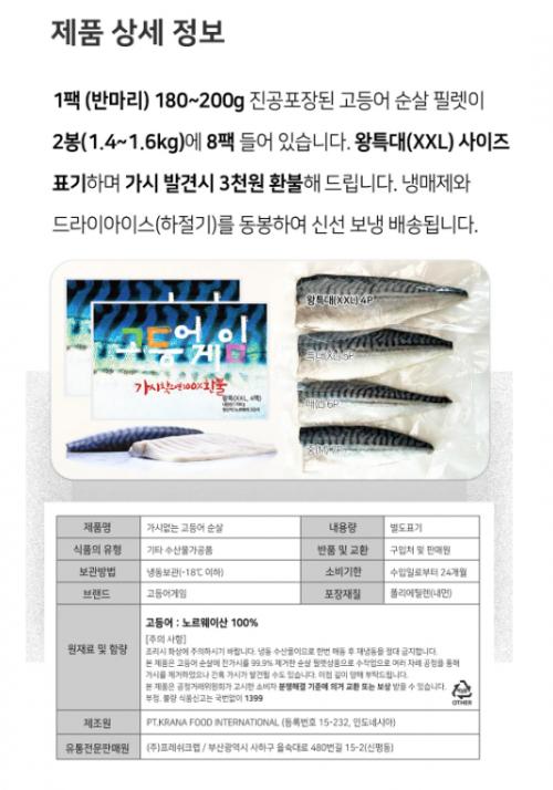 [알리 국내][9월24일~순차발송]가시발견시3천원환불 가시없는 고등어순살 왕특대(XXL) 2봉(8팩) 1.4~1.6kg (28,000원/무료) 쿠폰적용