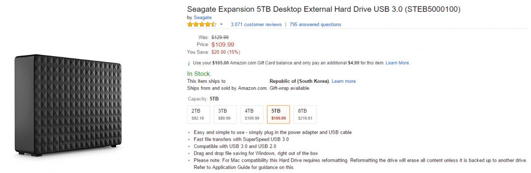 대용량 동영상이나 백업 파일 저장 용도로 적당하겠네요^^♡ |