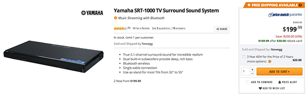[newegg] Yamaha SRT-1000 TV Surround Sound System ($199.99/FS)