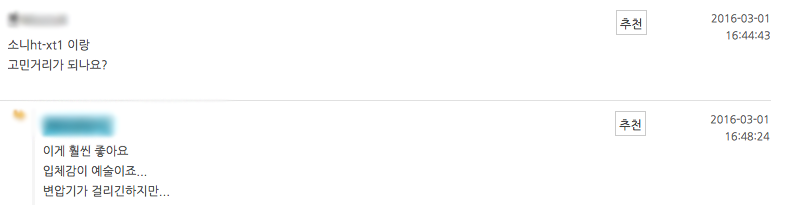 제가 전에 올렸던 소니 HT-XT1이랑 비교하면, 야마하 SRT-1000이 더 좋다는 의견이 있습니다.