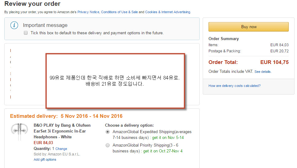 독일 아마존이고 한국 주소를 영어로 넣고 주문하면 직배송해 줍니다.