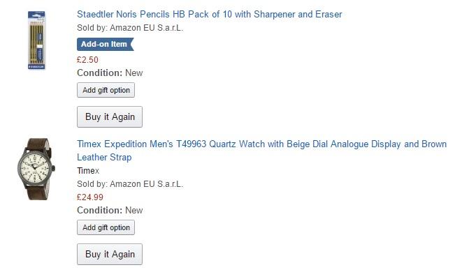 그냥 시계만사면 프로모션 5파운드 적용이 안되서 에드온 아이탬 2.5파운드 짜리 연필 세트 넣었습니다.