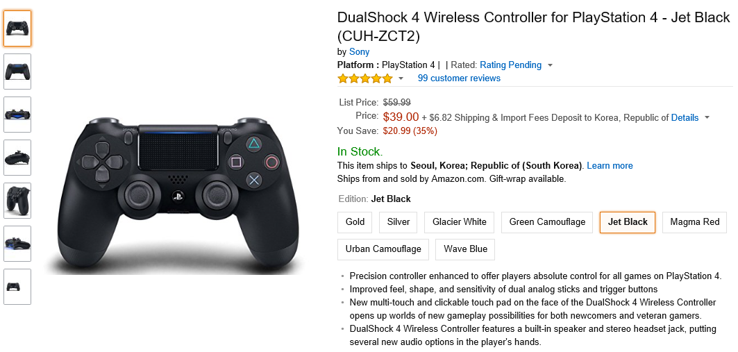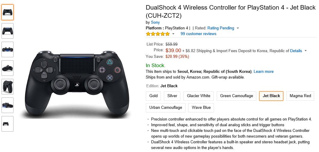 리스트 중, 젯 블랙만 신형 듀얼쇼크 (PS4 2xxx번과 PS4 Pro인 7xxx번에 동봉되는 CUH-ZCT2 모델) 이오니 유의하시기 바랍니다.