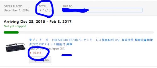 혹시나 싶어서 같은 리얼포스 제품중에, 소비세 제외하고 17000엔 가량 하는 물건을 넣어보니 칼같이 디파짓 때리네요.
