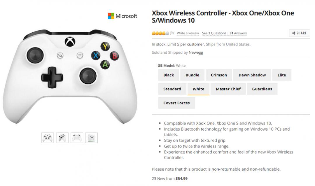 [newegg.com] Xbox Wireless Controller - Xbox One/Xbox One S/Windows 10 (39.99$/0) > 해외핫딜