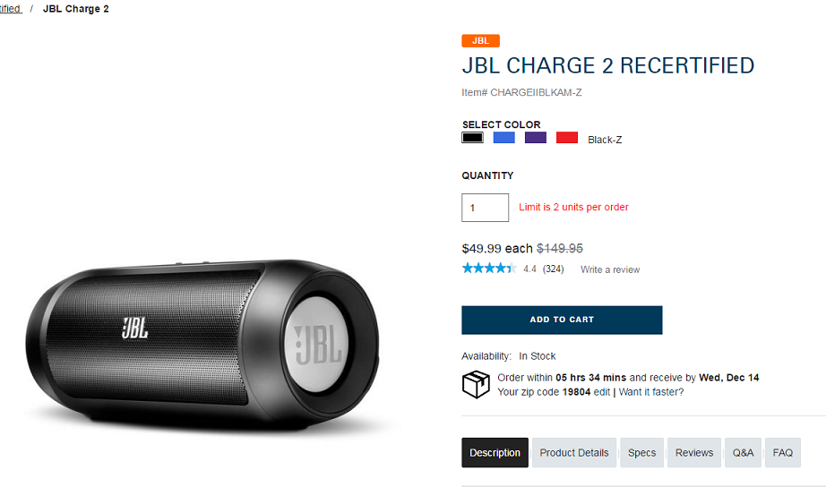 [harmanaudio] JBL CHARGE 2 RECERTIFIED (49.99/무료)
