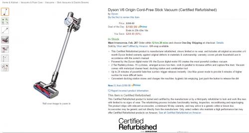 이베이 다이슨 리퍼 등에서 더 낮은 가격에 가끔 뜨니 아마존 가격이 저렴한 것은 아닙니다만 어쨌건 아마존이라는 점이 메리트이긴 합니다. (다만 실제 하는 곳이 우트라는 건 문제죠.)