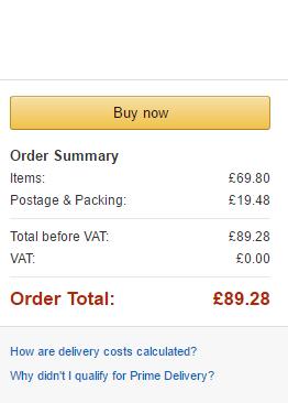 한국 직배가능합니다 직배하면 가격이 £69.80에 배송비 £19.48입니다, 배송비포함하면 £​89.28
