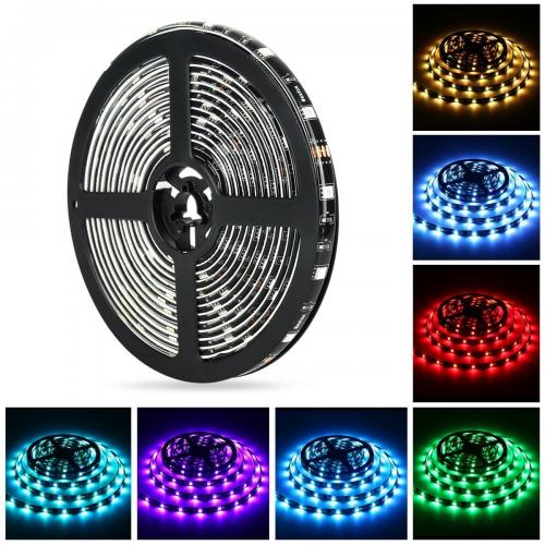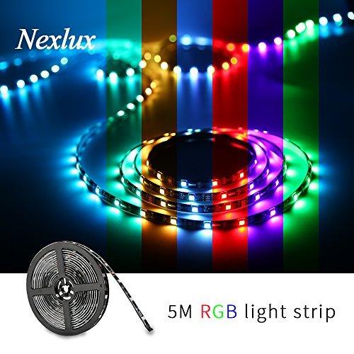 16.4ft LED light strip, Nexlux Waterproof 5050 SMD Single RGB LED Flexible Strip Light Black PCB Board Color Changing Decoration Lighting (No power adapter and remote ) $4.20