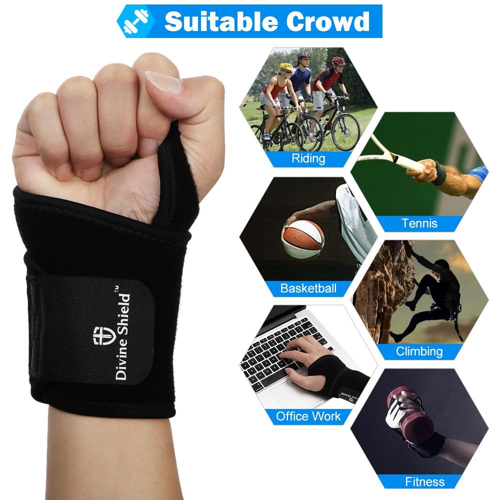 Sports Wrist Brace Fitted Right/Left Wrist Stabilizer Wrist Support Wraps for Badminton Volleyball Tennis Basketball Wrestling Fitness Weightlifting for Women and Men One Size Black Divine Shield $4.10