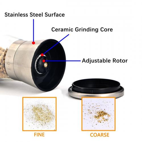 Pepper Mill and Salt Shaker Set Stainless Steel Pepper and Salt Mill Sets with Adjustable Coarseness & Cleaning Brush by F-Q-T (2 pieces) $5.39