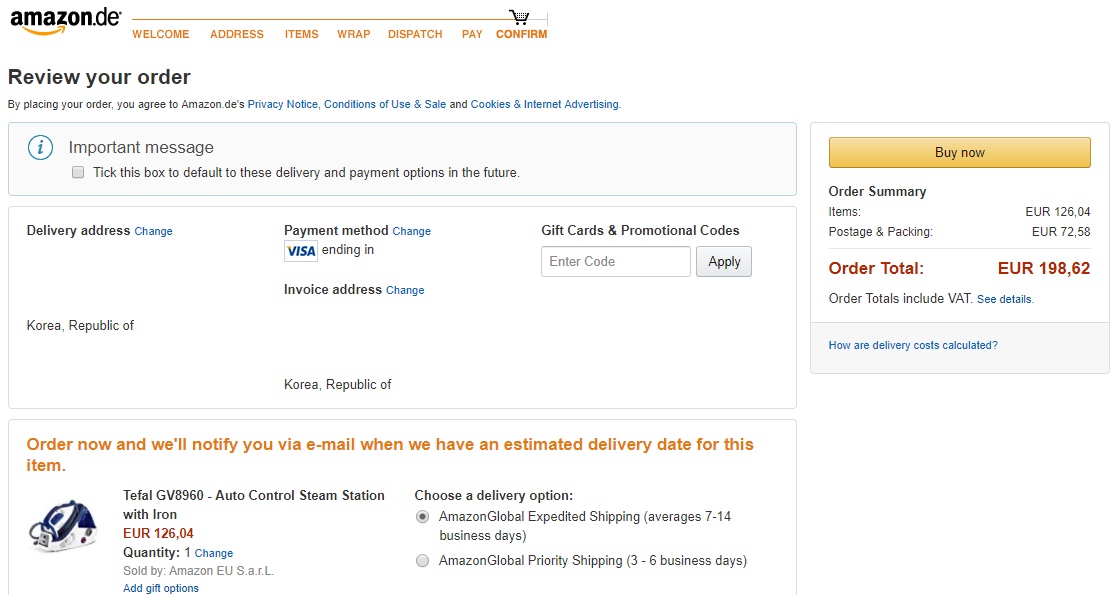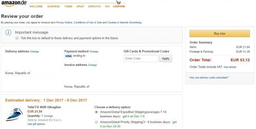 그래서 비싼 녀석을 골랐더니 배송비도 같이 상승하네요. 그래도 그렇지 72유로는...