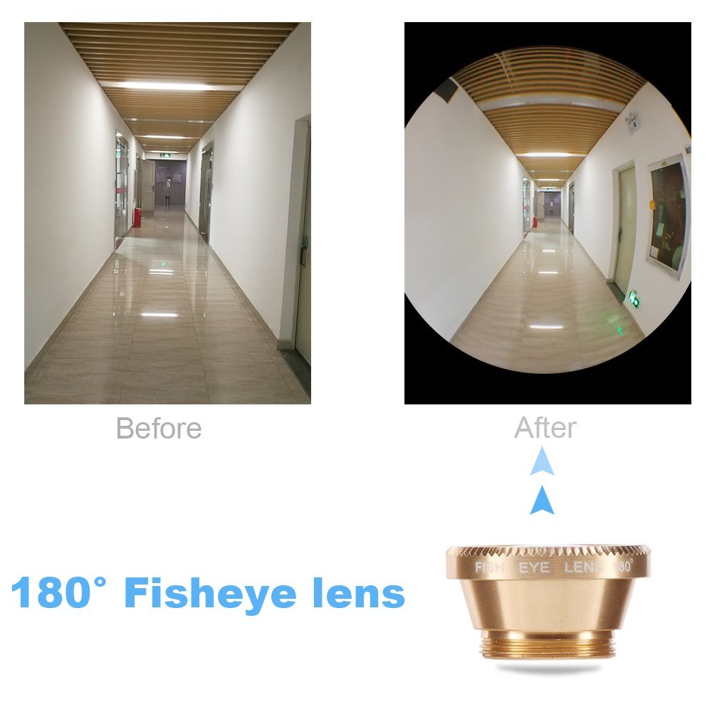 Phone Camera Lens, 3 in 1 Clip-on Cell Phone Camera, 10x Macro Lens + 0.65x Wide Angle Lens + 180° Fisheye Lens for Most Smartphones JHS-TECH (Golden) $4.50