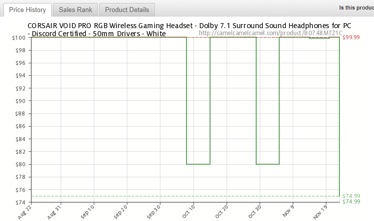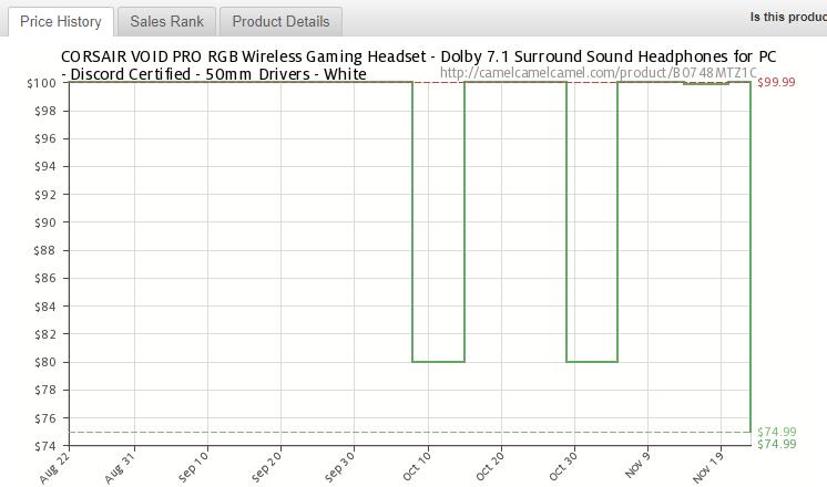 [Amazon] CORSAIR VOID PRO RGB Wireless Gaming Headset - Dolby 7.1- White ($74.99원/FREE)
