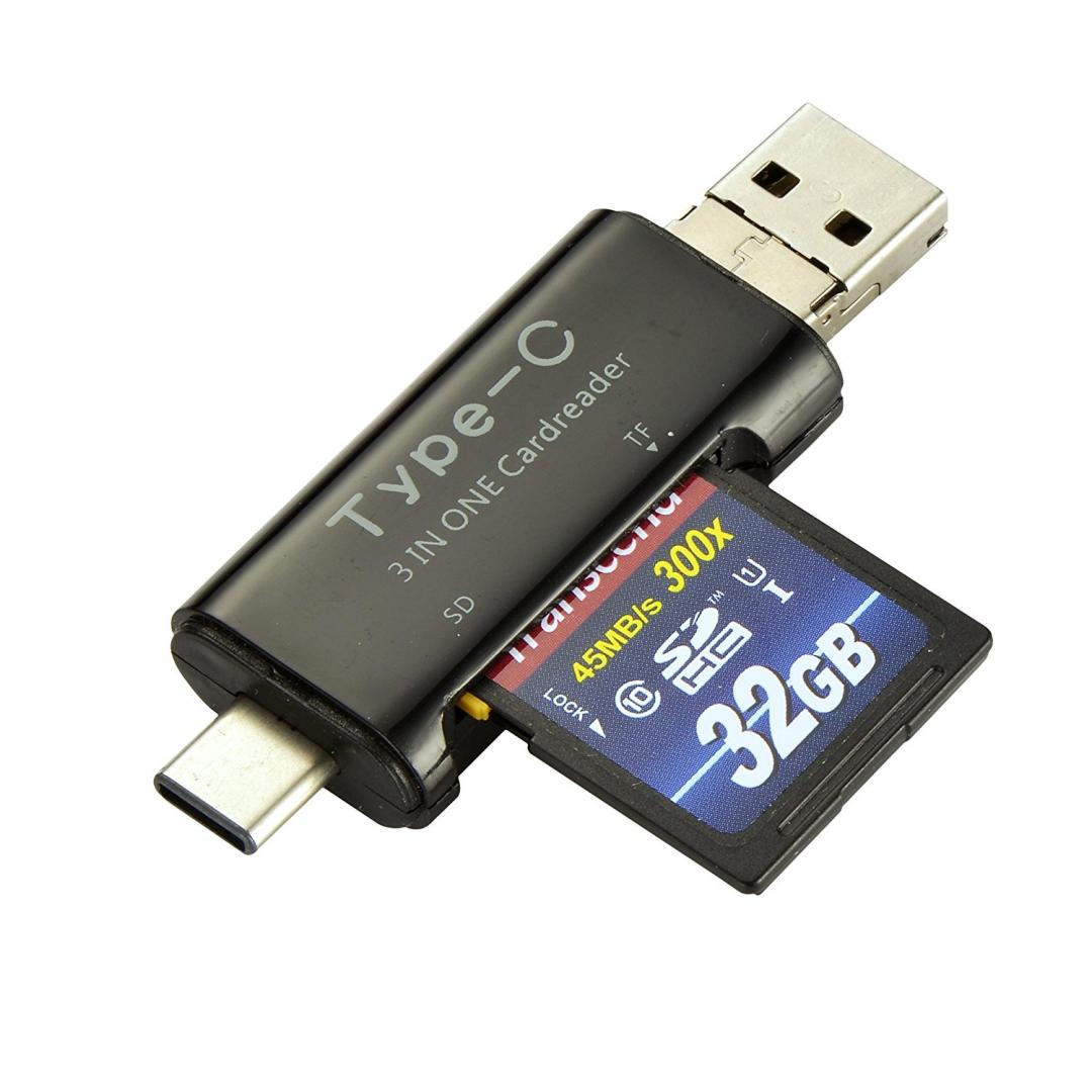Innolage Type-C & Micro USB & USB 3-in-1 multi-function card reader (Black) $4.00