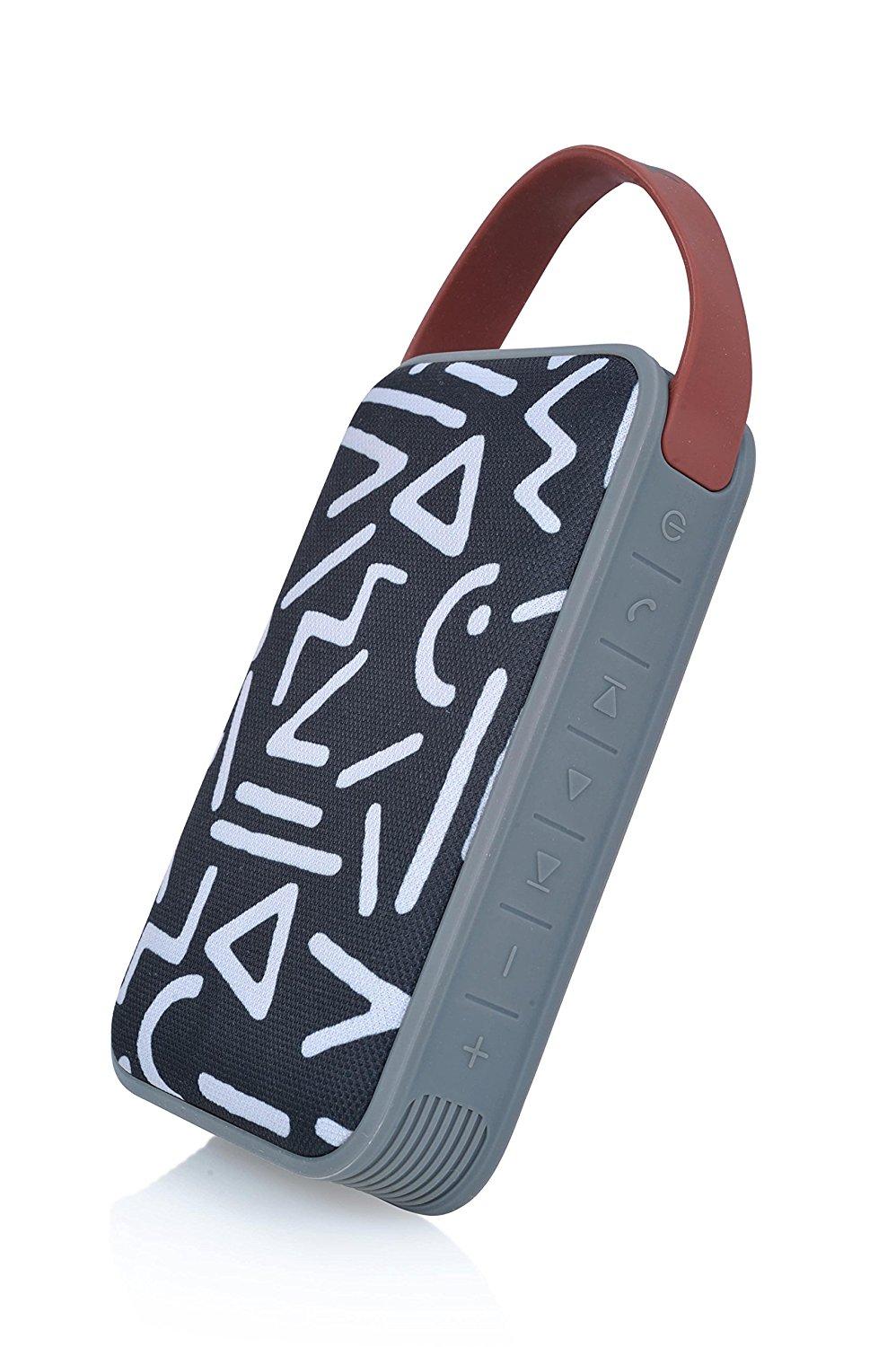 무려 7,500mAh 보조배터리 기능이 있는 전/후면 패브릭, 테두리/손잡이 고무재질 블투 스피커 입니다.