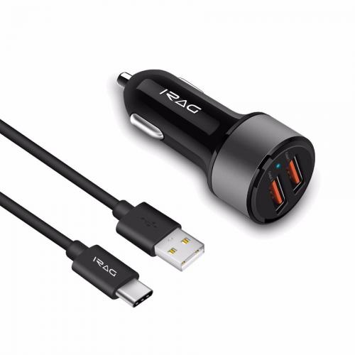 [Amazon](끌올)(애드온 해제) iRAG 36W QC 3.0 Two-Port Car charger + 6ft USB Type C Cable Cord (2.99/Prime FS) > 해외핫딜
