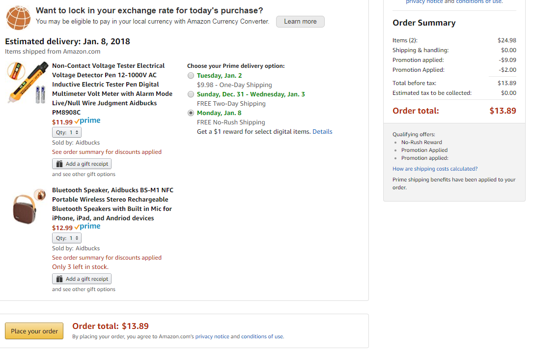 여기에 판매자 제품 2개 이상 프로모션으로 $ 2 추가할인이 됩니다.