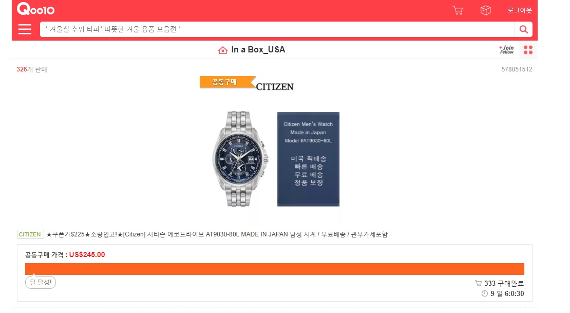 [Q10] [Citizen] 시티즌 에코드라이브 AT9030-80L MADE IN JAPAN 관,부가세 포함 (225/집까지 무료) > 해외핫딜