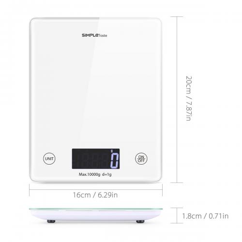 최소 눈금 1g / 단위변환 4종류 (g / lbs / oz / ml) / AAA 2개로 작동