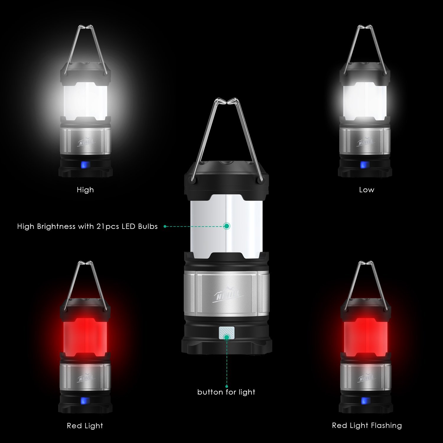 랜턴 4가지 모드 (밝게4.5시간/어둡게9시간/빨간불19시간/빨간불깜빡임4시간)