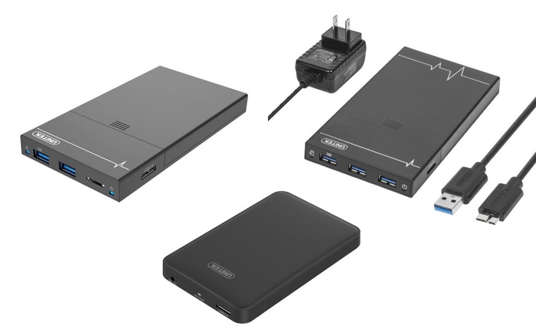 외장하드 케이스 + 충전포트 1 + USB 3.0 허브 1 + MicroSD 리더 1 + 아답타 포함