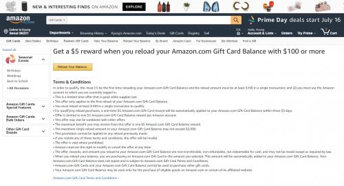 [Amazon] 기프트카드 $100 충전시 $5불 추가 프로모션 ($100/-) > 해외핫딜