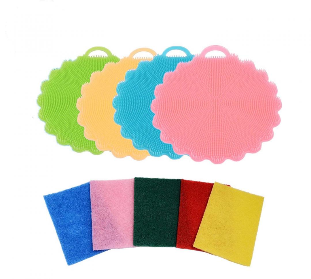 InseaCat Silicone Sponge Food-grade Antibacterial Dishwashing Scrubber Non Stick Multi-purpose Cleaning Kitchen Dish Brush,4 Pack Sponges+5Pack Scouring Pads Bonus $2.25