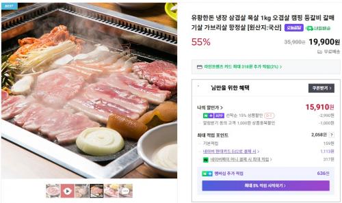 유황한돈 삼겹살+목살 1kg 15,910원(무배)