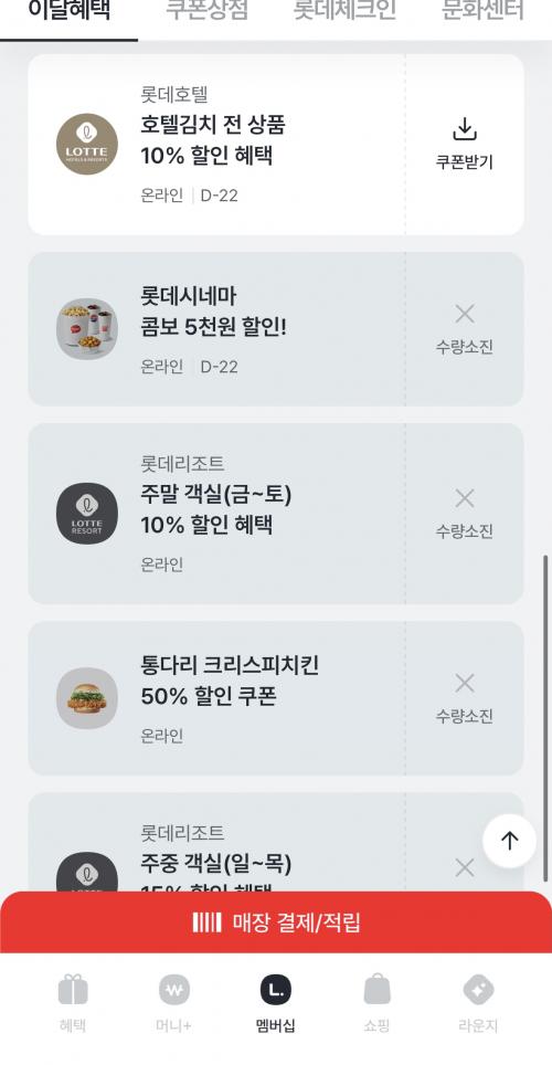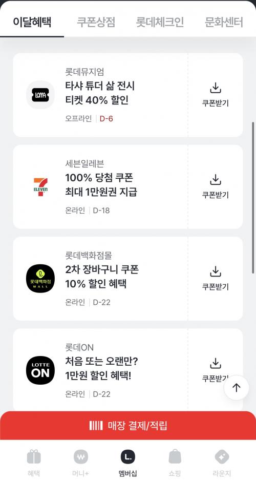 엘포인트앱 롯데 계열사(백화점,롯데온,롯데리아,세븐,리조트) 쿠폰 이벤트 > 쿠폰게시판